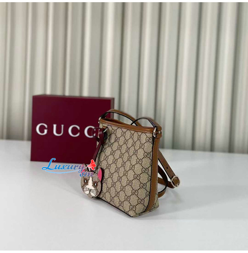 [스페셜오더]GUCCI-847090 9758 구찌 베이지/브라운 GG 엠블럼 나노 버킷백