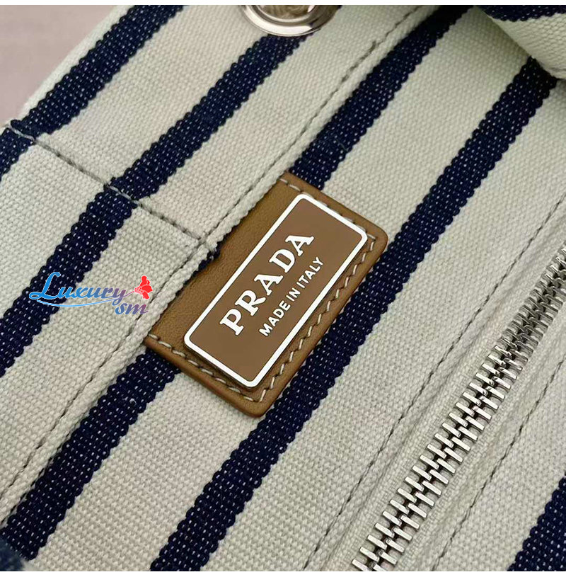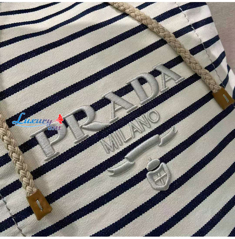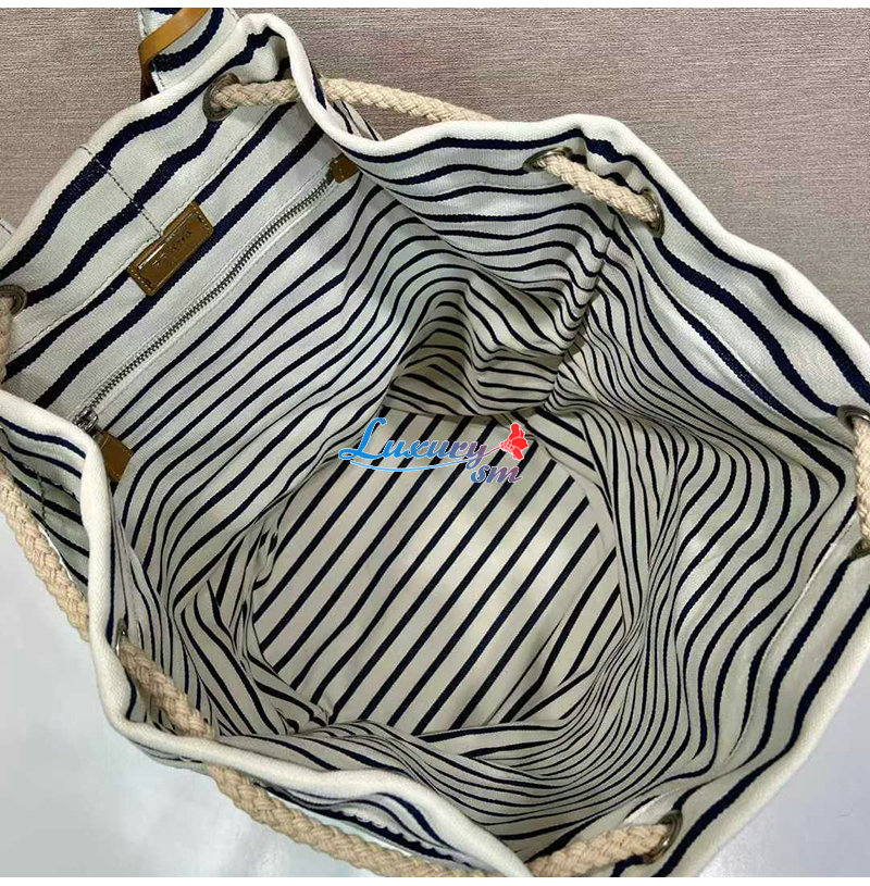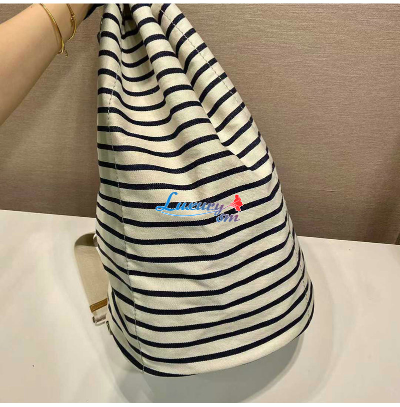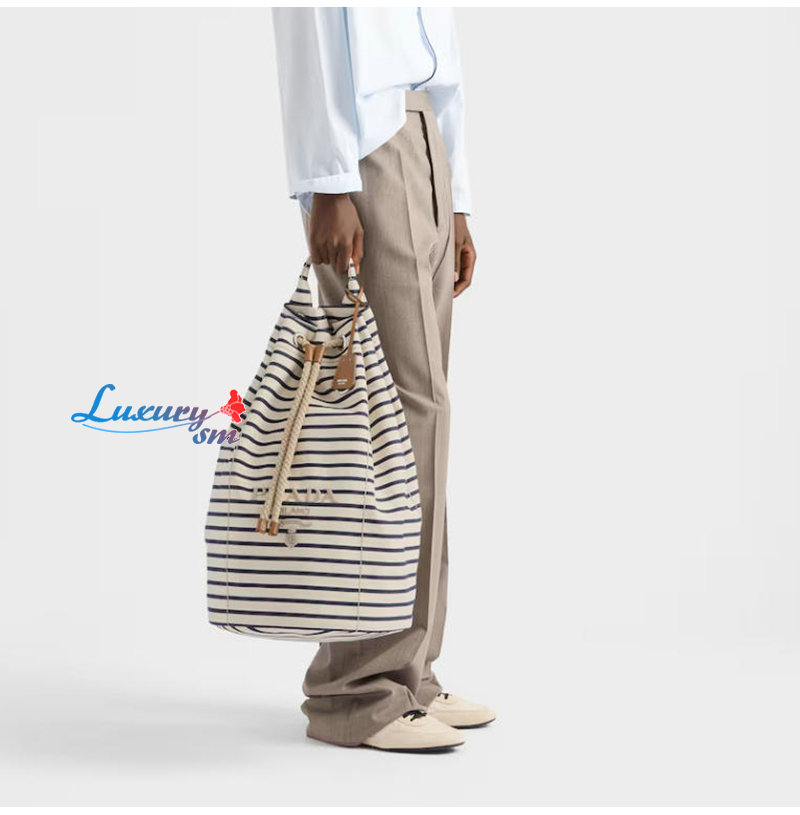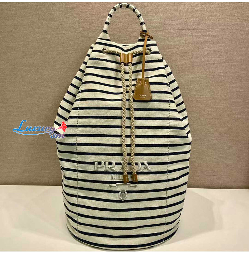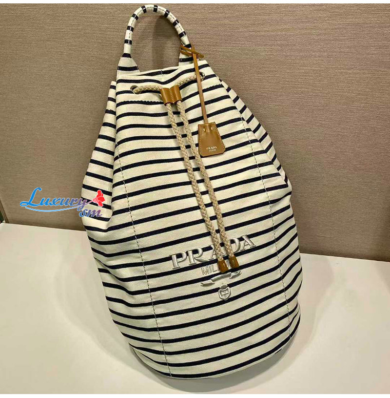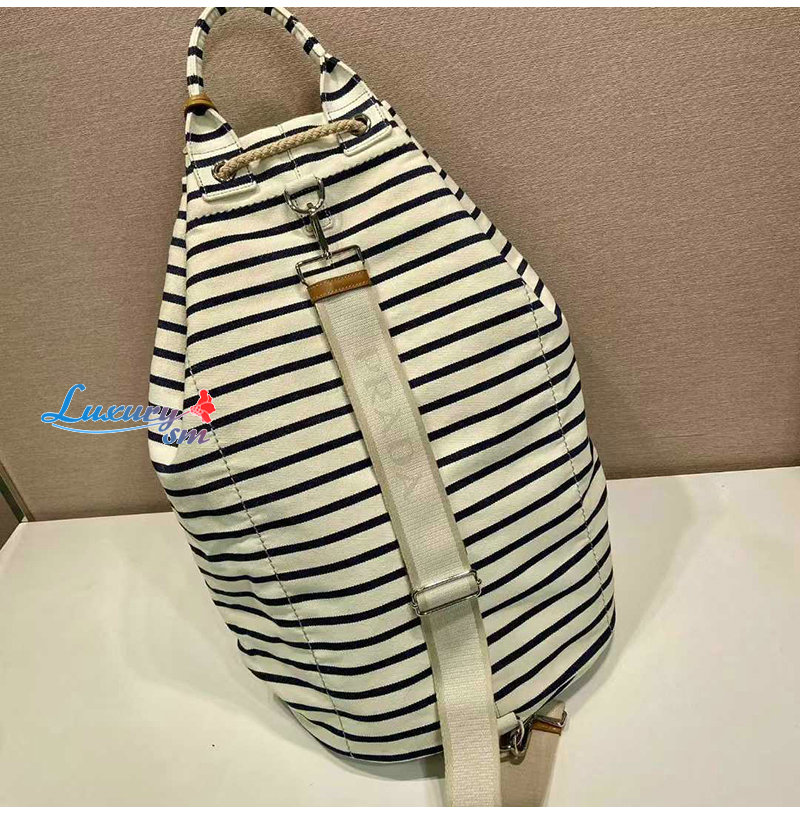 [스페셜오더]PRADA-2VY011 프라다 화이트/블루 스트라이프 캔버스 드로스트링 더플백