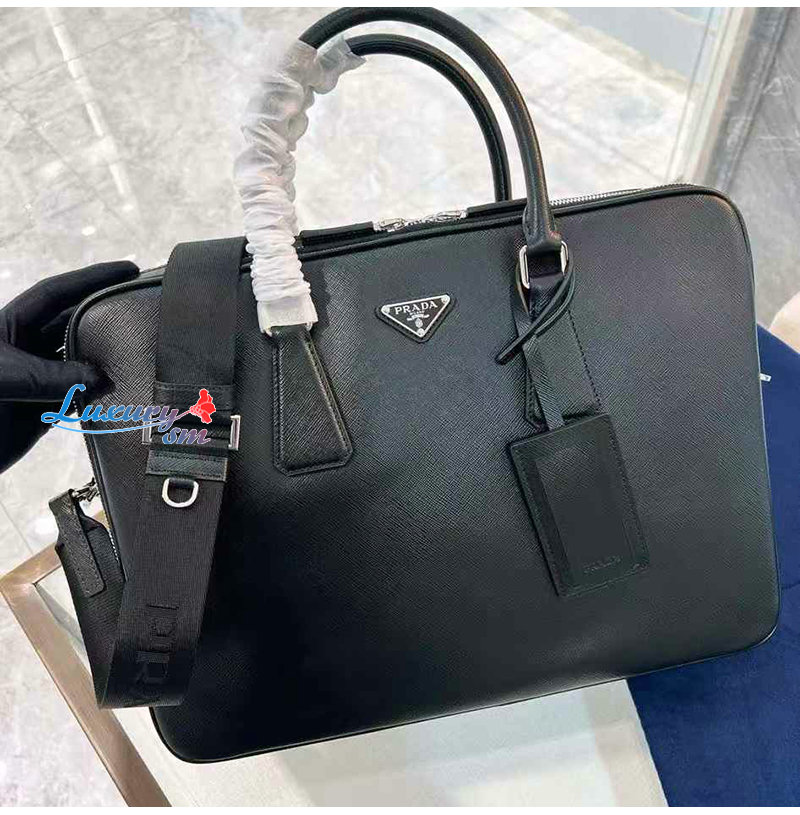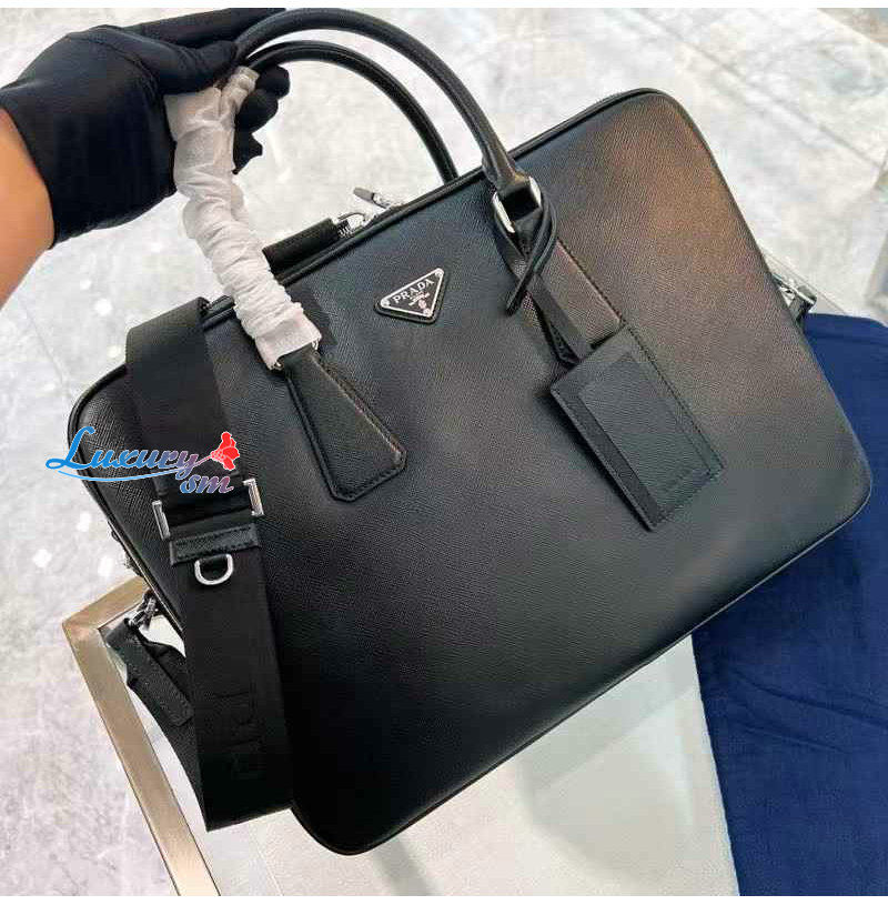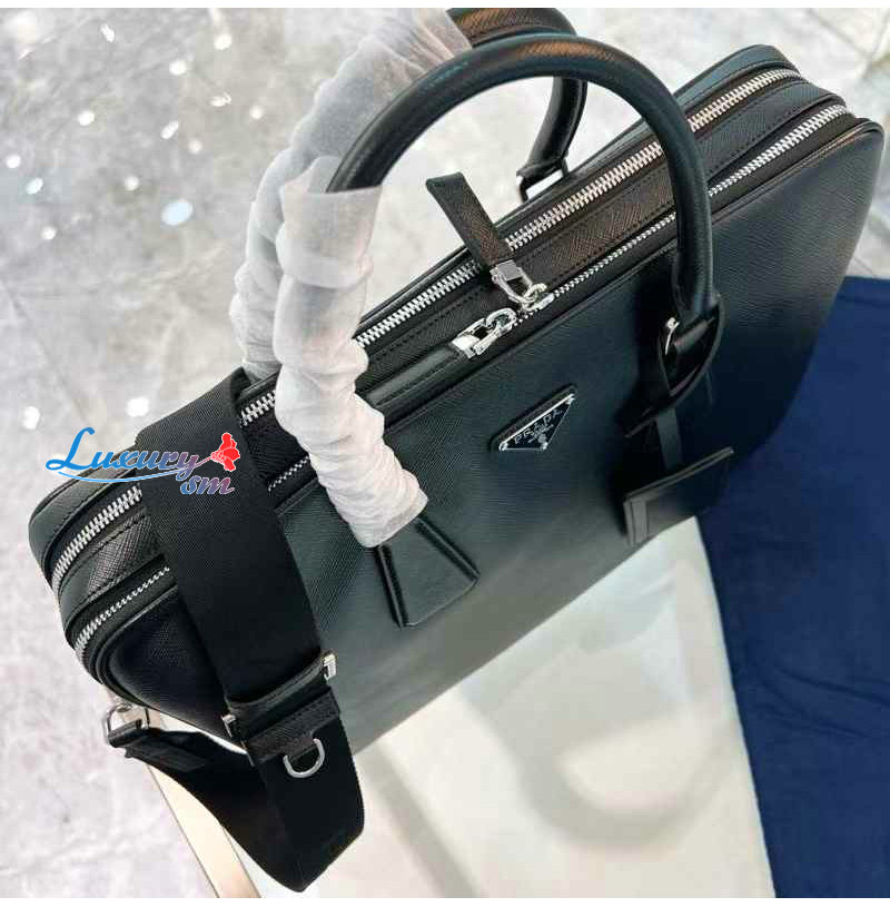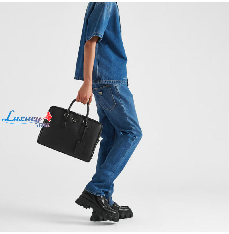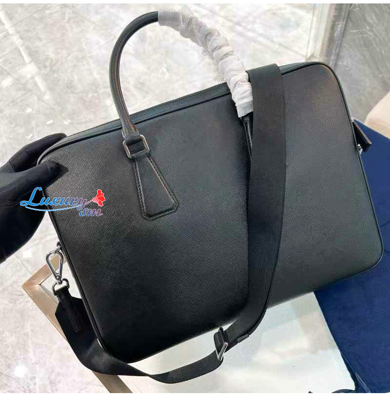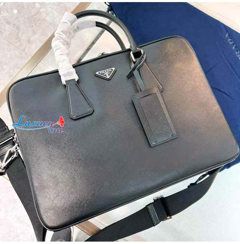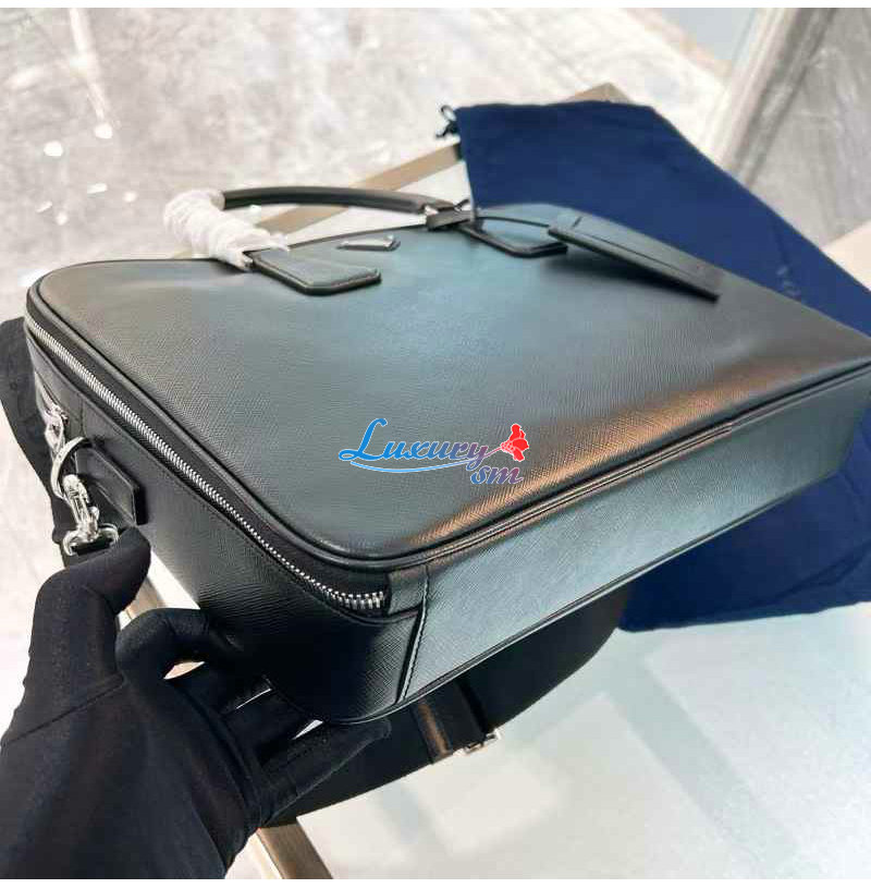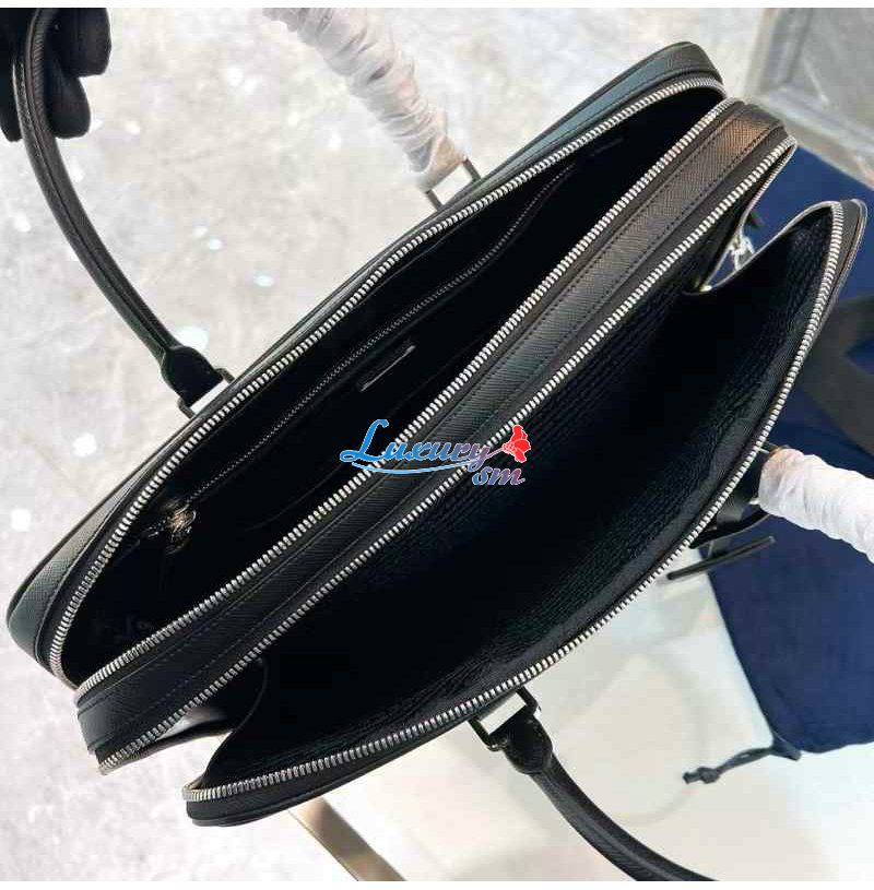 [스페셜오더]PRADA-2VE022 프라다 블랙 사피아노 가죽 브리프케이스