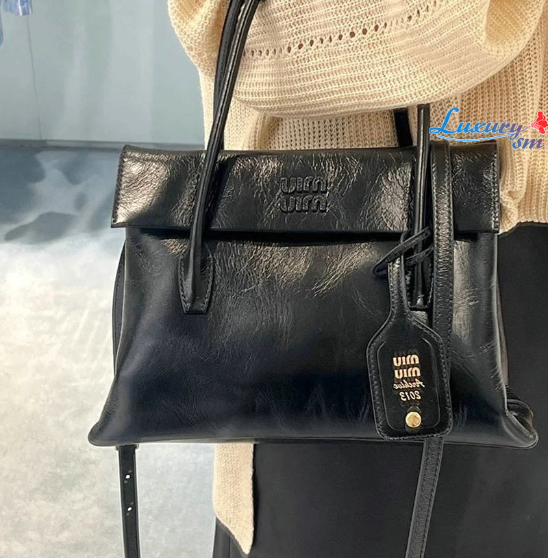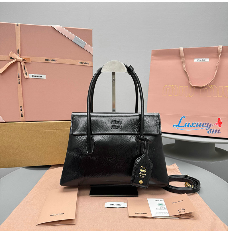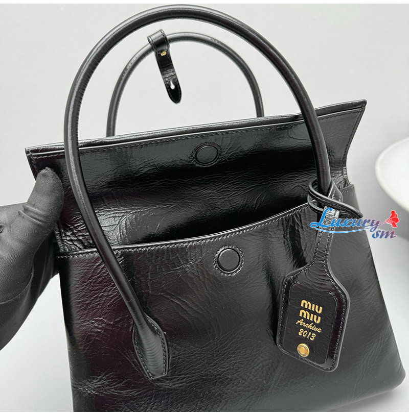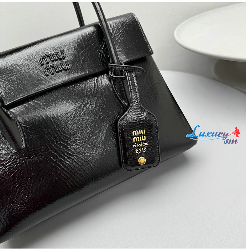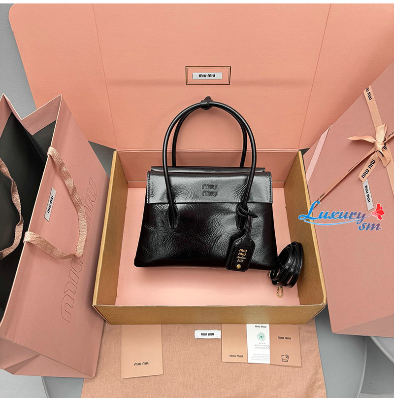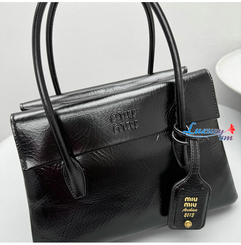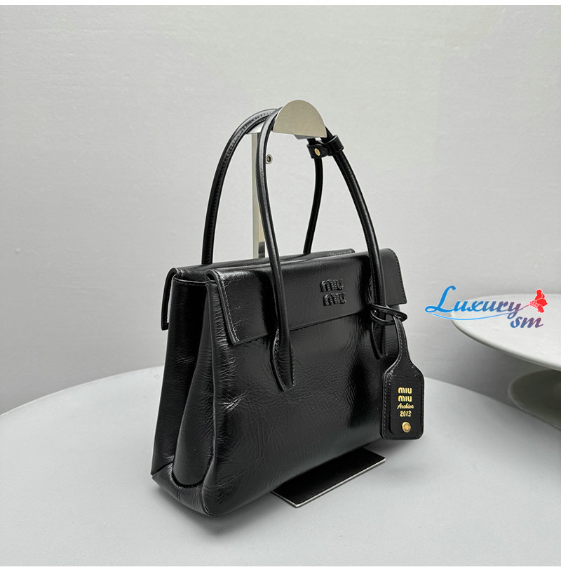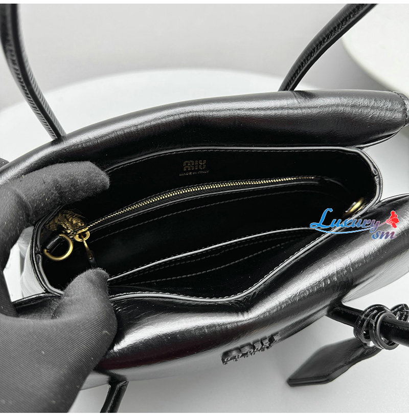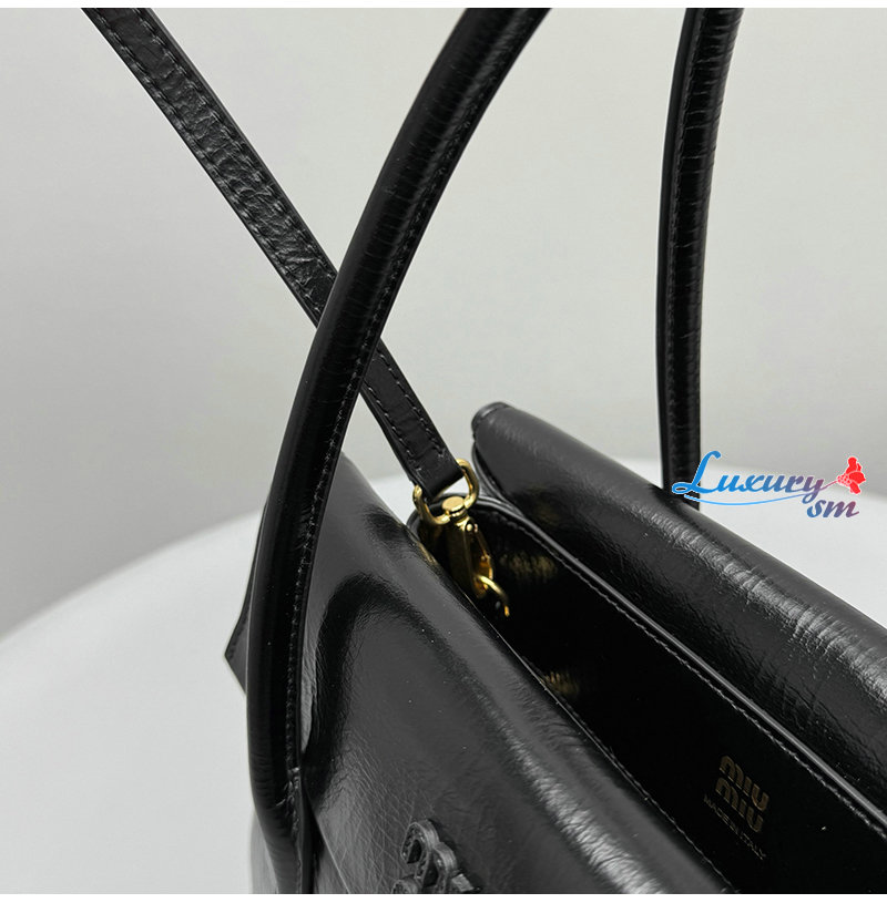 [특급스페셜오더]MIUMIU-5BA302 미우미우 광택 가죽 Solitaire 솔리테르 핸드백 블랙