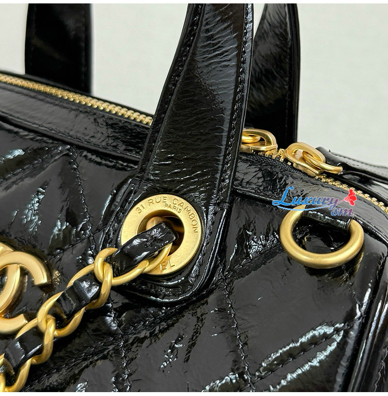 페이던트 소가죽이 지닌 고유한 광택감과 볼링백의 형태가