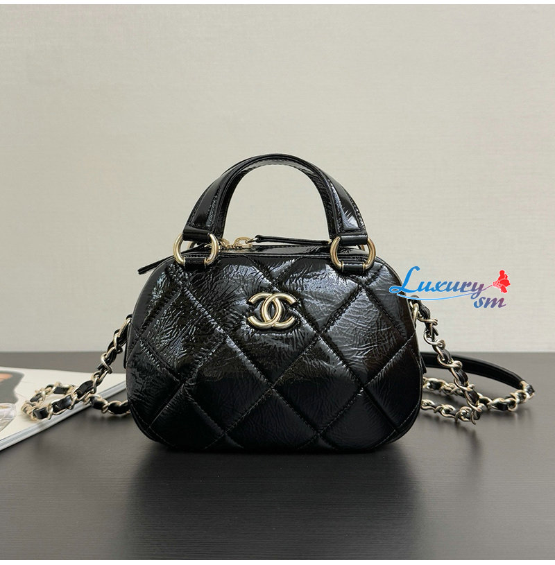 샤넬 미니 볼링백 샤이니 크럼플드 카프스킨 블랙