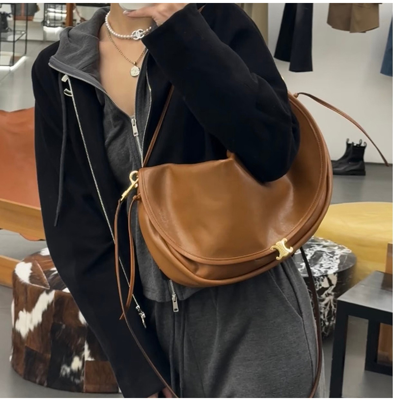 [스페셜오더]CELINE-124142 셀린느 서플 샤이니 램스킨하프문 소프트 트리옹프 백 소프트 탠