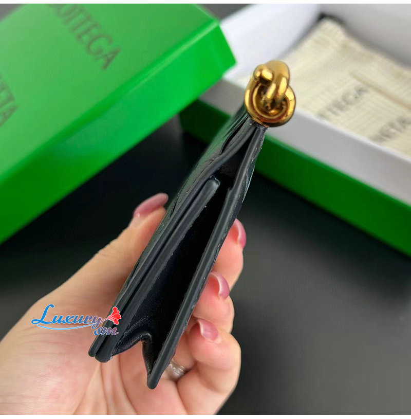 시그니처 놋 디테일을 갖춘 인트레치아토 송아지가죽 소재의 스몰 폴더형 지갑.