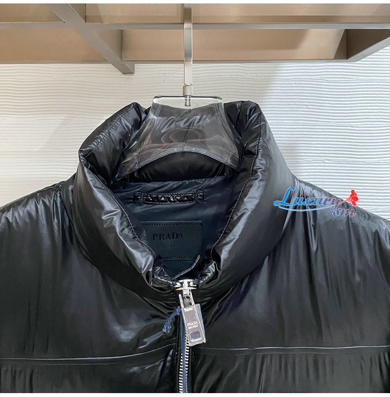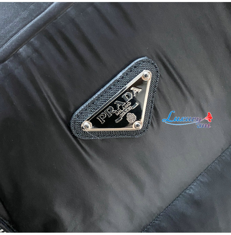 PRADA-1E9C38 PRADA 2025 F/W 신형 자카드 나일론 패딩 / 금속 소형 로고 패딩 블랙 남성용