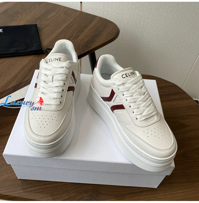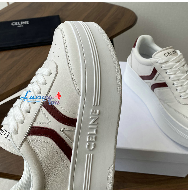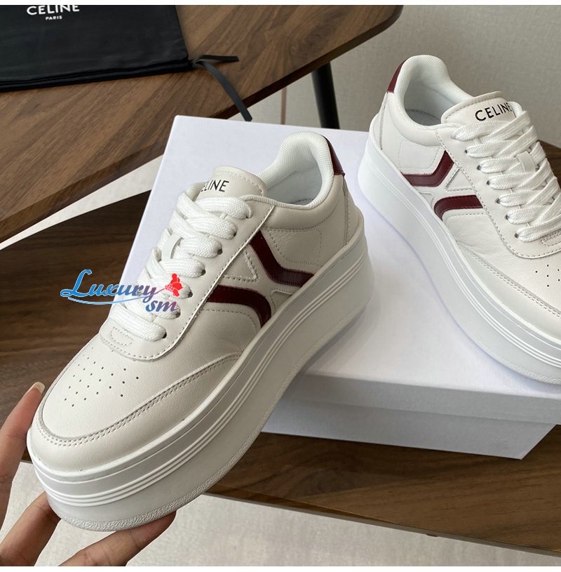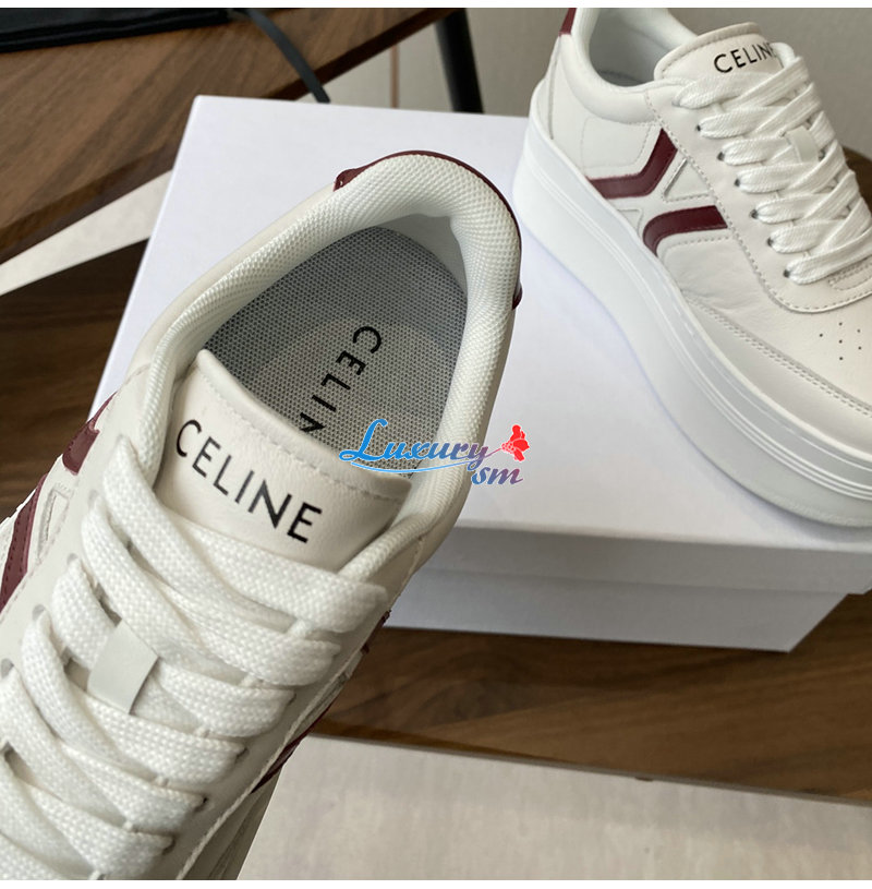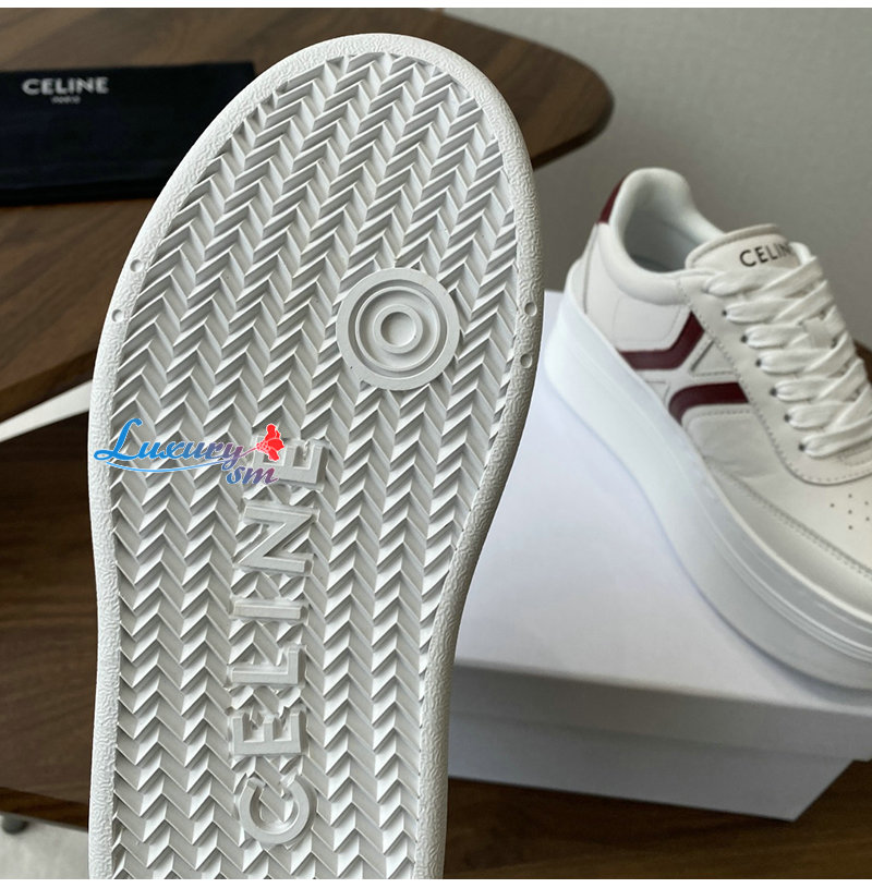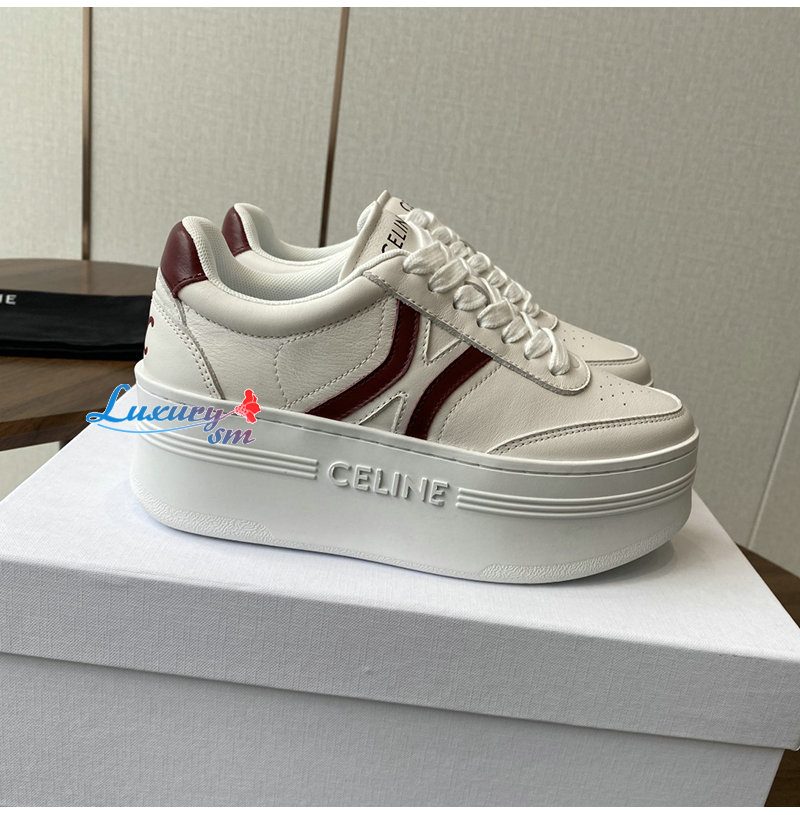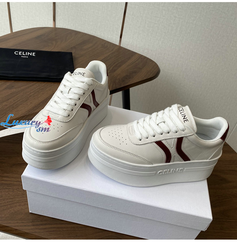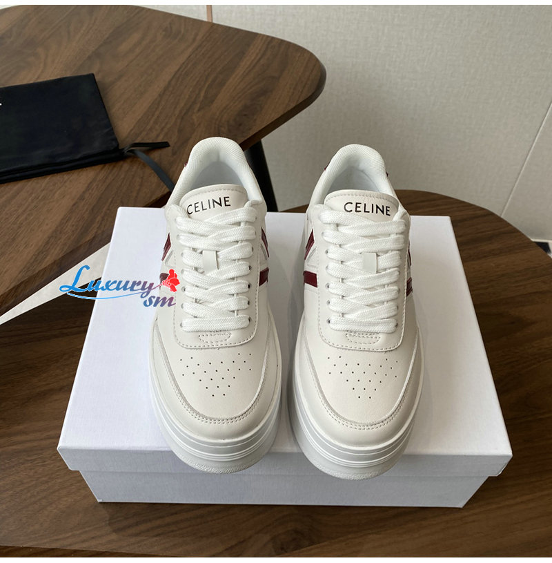 CELINE-365215 셀린느 화이트/버건디 웨지 아웃솔 블록 스니커즈 여성용
