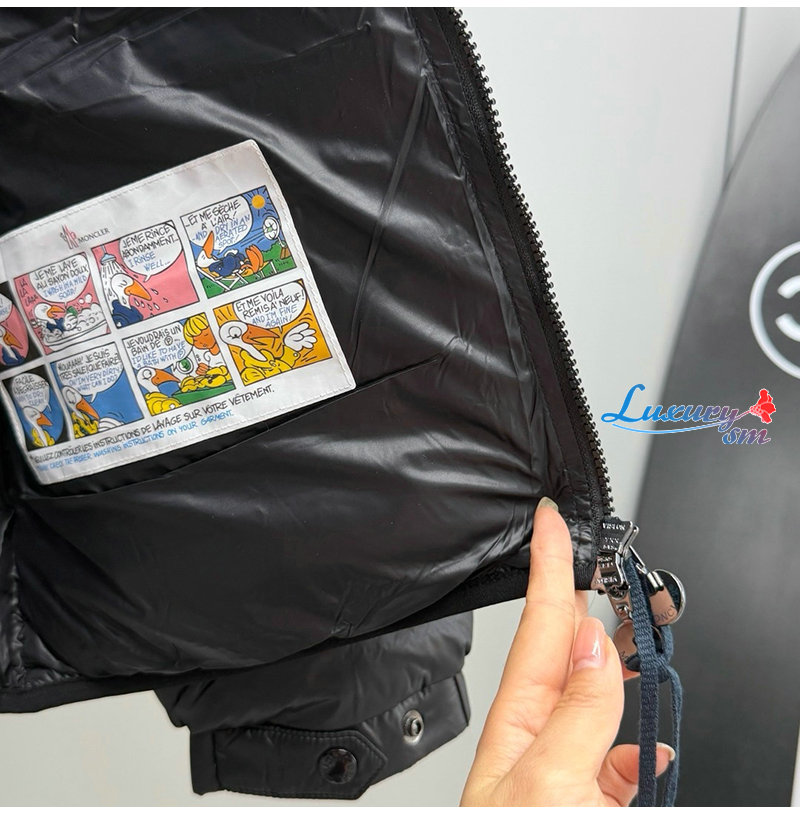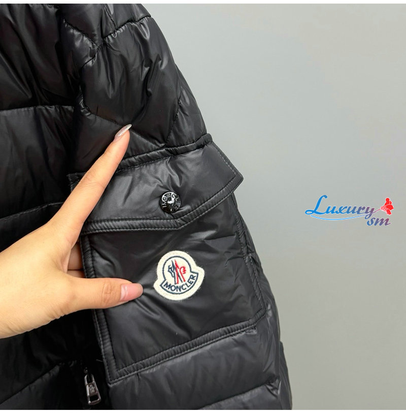 쇼트 푸퍼는 소매 포켓과 로고 퀼팅 디테일이 돋보입니다.