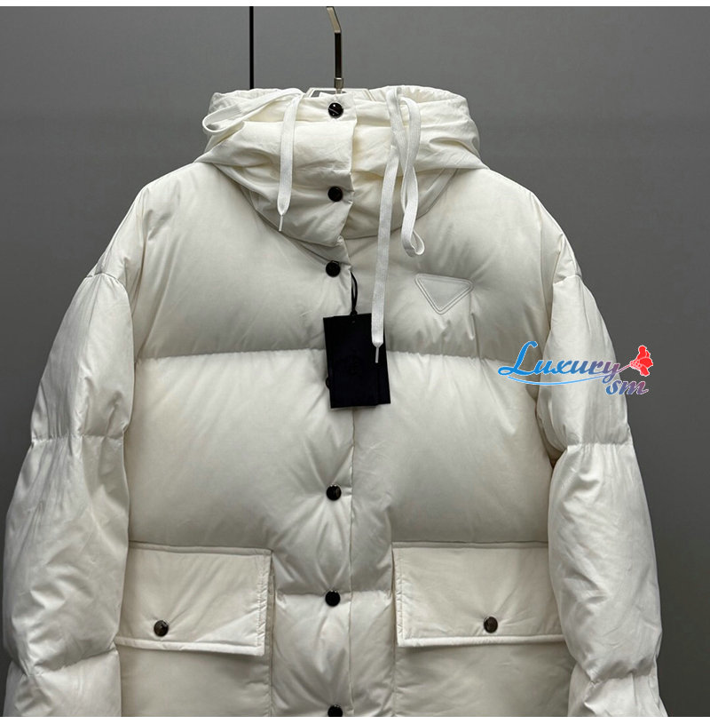PRADA-112401 프라다 2025 가을/겨울 신상 미디엄 기장 후드 퀼팅 패딩 여성용(2컬러)